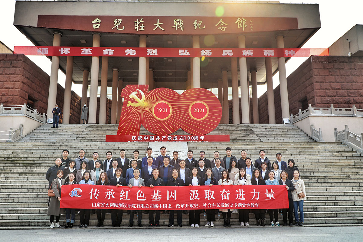 為傳承紅色基因、汲取奮進力量,扎實推進黨史學習教育走深走實,10月25日至26日山東省水利勘測設計院有限公司黨委組織部分黨員干部及近三年新入職黨員赴臺兒莊,圍繞“新中國史、改革開放史、社會主義發(fā)展史”開展專題黨性教育學習。公司黨委副書記王洪濤、紀委書記馬慶軍參加此次活動。
