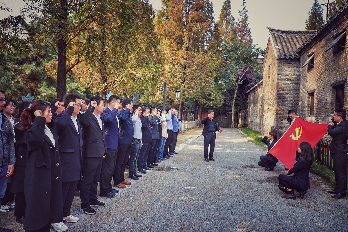 10月26日,山東水設黨員來到臺兒莊干部教育基地進行現(xiàn)場教學。中華民族有著光榮悠久的愛國主義傳統(tǒng),一向以勇于抗敵御辱而著稱。無數中華兒女用熱血青春唱響愛國主義的凱歌,用血肉之軀演繹抗敵御辱的篇章。他們以赤誠的報國之心,大無畏的犧牲精神,譜寫出驚天地泣鬼神的愛國主義史詩。這種“天下興亡,匹夫有責”的家國情懷,是留給我們最寶貴的精神財富,也深深感染著在場的每一位黨員。在現(xiàn)場教員的帶領下,大家共同瞻仰烈士遺骸發(fā)掘處,聆聽“57把大刀定乾坤”的英雄故事;學習滇軍連長趙克的“一封家書”;瞻仰湖南女兵劉守玟雕塑、聆聽其英雄事跡;來到清真寺教學點,了解臺兒莊清真古寺的前世今生;參觀臺兒莊戰(zhàn)役遺址——彈孔墻,那累累彈痕不僅是無聲的“歷史見證者”,更是中國軍民抗戰(zhàn)精神的真實寫照,全體黨員在王洪濤同志的帶領下,重溫入黨誓詞,用鏗鏘有力的聲音再次莊嚴宣誓,決心以革命先輩為榜樣,不忘初心,牢記使命,立足崗位、再創(chuàng)佳績。