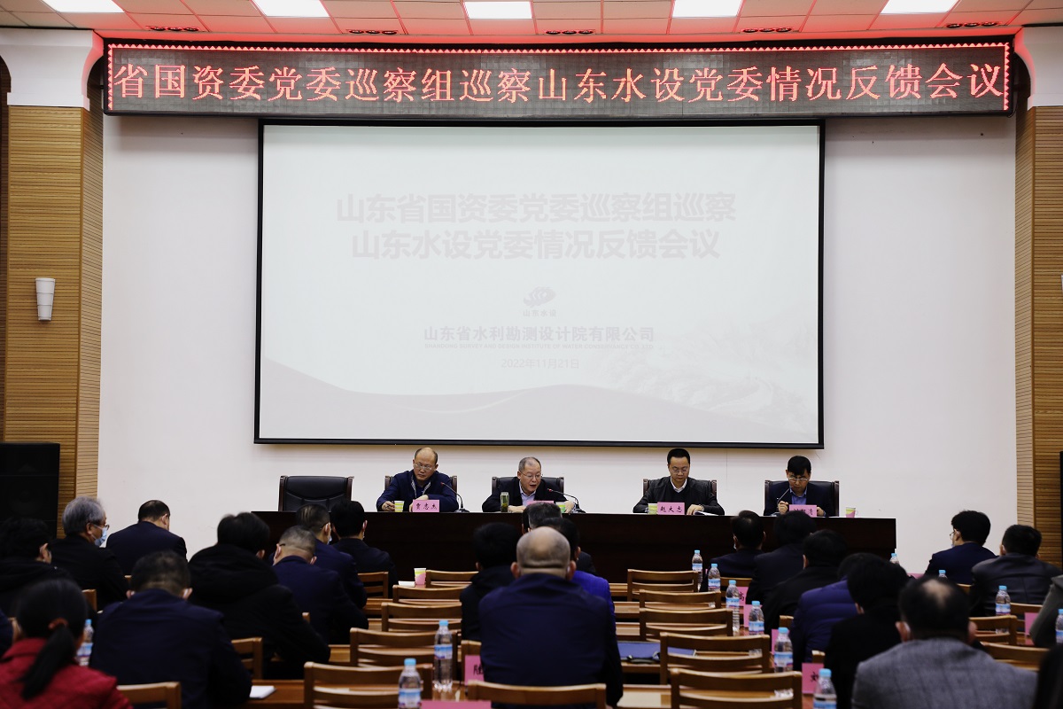 根據(jù)省國資委黨委安排,11月21日,省國資委黨委第二巡察組向山東省水利勘測設(shè)計院有限公司(以下簡稱山東水設(shè))反饋巡察情況。省管企業(yè)監(jiān)事會主席、省國資委巡察工作領(lǐng)導(dǎo)小組副組長王紹亮主持向山東水設(shè)黨委書記、董事長劉紹清的反饋會議,傳達了省國資委黨委書記、主任,巡察工作領(lǐng)導(dǎo)小組組長張斌的講話精神,出席向公司黨委的反饋會議,提出巡察整改要求。省國資委黨委第二巡察組副組長賈志杰向公司黨委反饋了巡察情況。