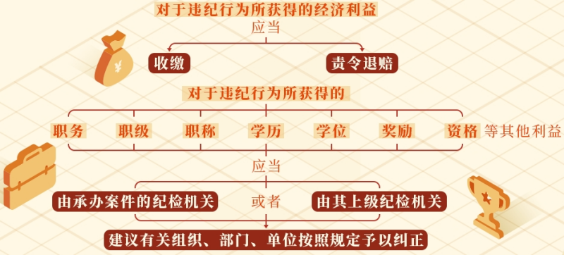《中國共產(chǎn)黨紀律處分條例》對于違紀行為所獲利益如何處理作出了規(guī)定。主要分為兩種情況——
