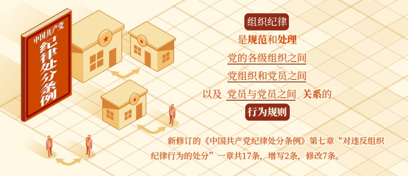 新修訂的《中國(guó)共產(chǎn)黨紀(jì)律處分條例》第七章“對(duì)違反組織紀(jì)律行為的處分”共17條,增寫(xiě)2條,修改7條。新增第八十條,對(duì)在黨組織紀(jì)律審查中,依法依規(guī)負(fù)有作證義務(wù)的黨員拒絕作證或者故意提供虛假情況,達(dá)到情節(jié)較重或者情節(jié)嚴(yán)重程度的,給予警告、嚴(yán)重警告直至開(kāi)除黨籍的處分;新增第八十五條,明確規(guī)定在推進(jìn)領(lǐng)導(dǎo)干部能上能下工作中搞好人主義,存在以黨紀(jì)政務(wù)等處分規(guī)避組織調(diào)整、以組織調(diào)整代替黨紀(jì)政務(wù)等處分或者其他避重就輕作出處理行為的,視情節(jié)給予相應(yīng)處分。在第八十六條增寫(xiě)對(duì)在授予學(xué)術(shù)稱號(hào)中弄虛作假、違規(guī)謀利行為的處分規(guī)定,促進(jìn)營(yíng)造識(shí)才愛(ài)才敬才用才的良好氛圍,為推動(dòng)創(chuàng)新人才評(píng)價(jià)機(jī)制提供紀(jì)律保障;在第九十一條對(duì)黨員雖經(jīng)批準(zhǔn)因私出國(guó)(境)但存在超出批準(zhǔn)范圍的行為作出處分規(guī)定;等等。