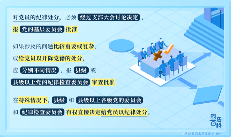 對黨員的紀律處分,必須經(jīng)過支部大會討論決定,報黨的基層委員會批準;