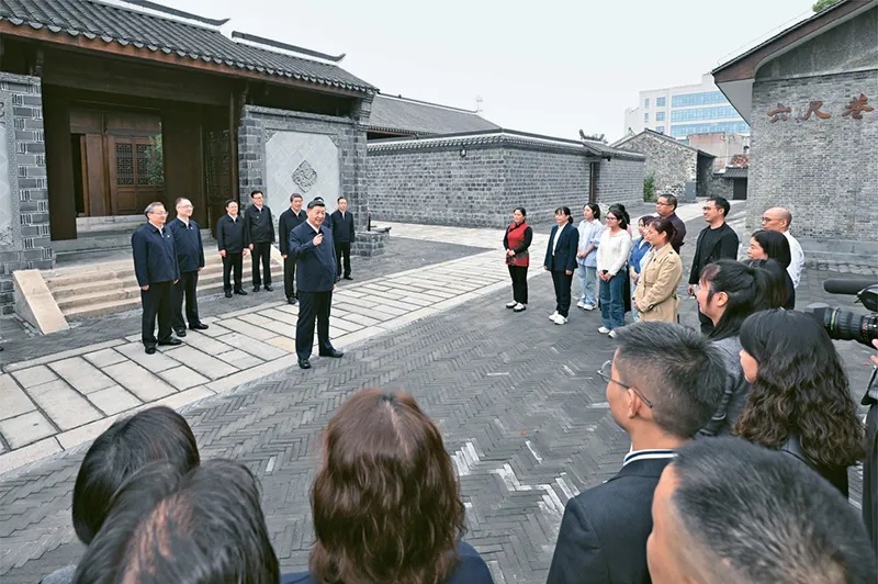 2024年10月17日至18日,中共中央總書記、國家主席、中央軍委主席習(xí)近平在安徽考察。這是17日下午,習(xí)近平在安慶桐城市六尺巷考察時(shí),同當(dāng)?shù)鼐用窈陀慰陀H切交流。新華社記者 申宏/攝