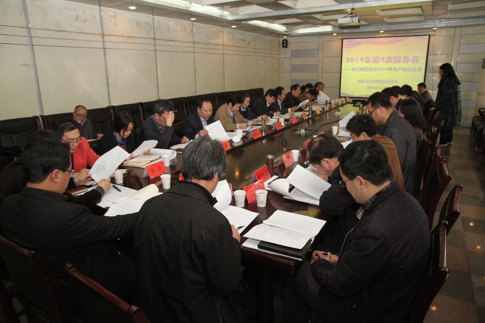 會(huì)上,辦公室副主任王俊杰對(duì)《山東省水利勘測(cè)設(shè)計(jì)院生產(chǎn)經(jīng)營任務(wù)責(zé)任分解分工表(修訂稿)》進(jìn)行了解讀;各位院副總和各部門負(fù)責(zé)人結(jié)合各自工作,針對(duì)院生產(chǎn)經(jīng)營任務(wù)責(zé)任分解分工表分別發(fā)表了意見;各位院領(lǐng)導(dǎo)結(jié)合自己分管的工作對(duì)全院的生產(chǎn)經(jīng)營工作提出了很好的意見和建議;最后,劉長(zhǎng)余院長(zhǎng)和劉紹清書記針對(duì)我院2014年全院生產(chǎn)經(jīng)營工作分別發(fā)表了重要講話。