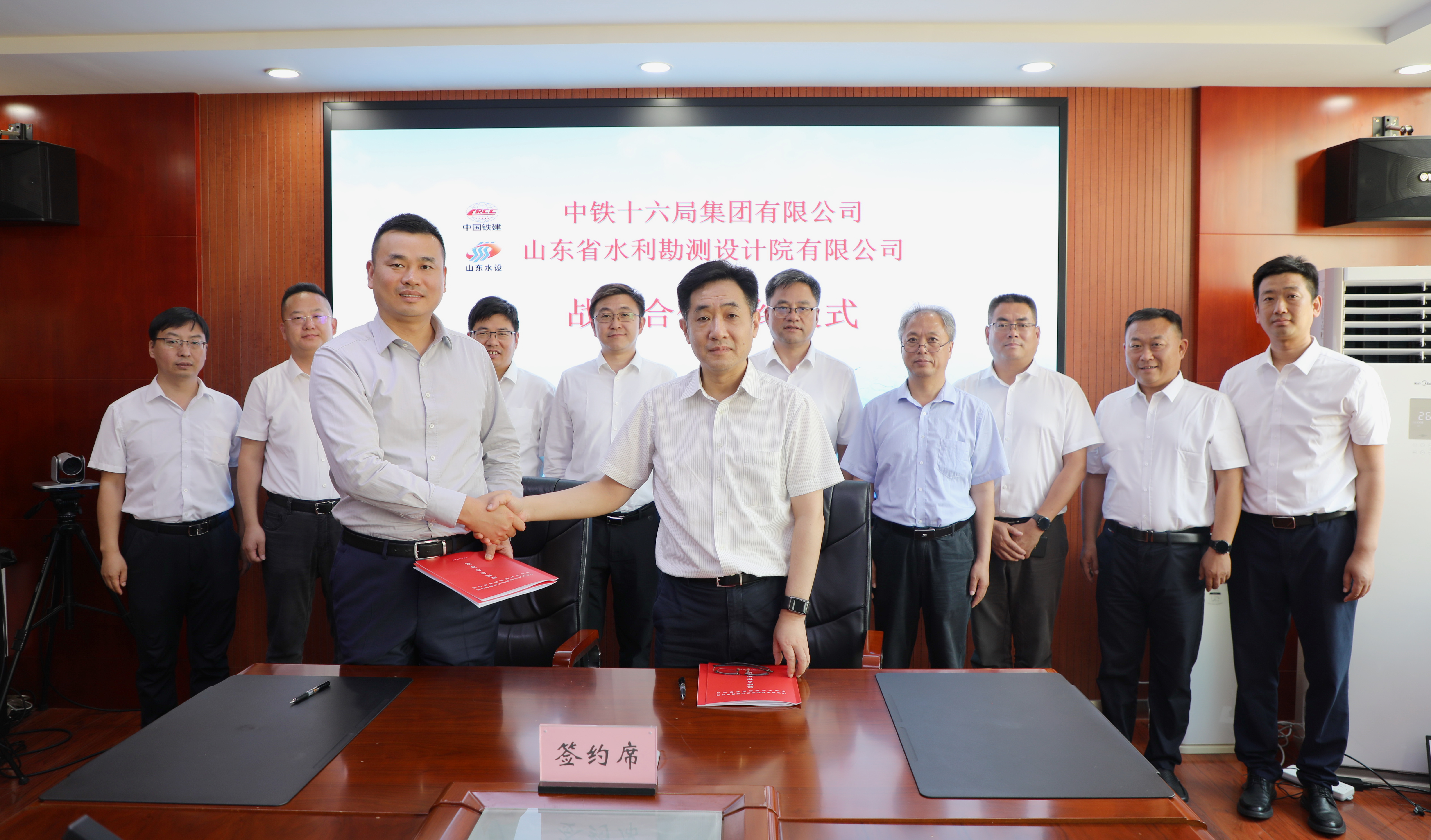 6月20日,山東省水利勘測(cè)設(shè)計(jì)院有限公司(以下簡(jiǎn)稱山東水設(shè))與中鐵十六局集團(tuán)有限公司(以下簡(jiǎn)稱中鐵十六局)簽署戰(zhàn)略合作協(xié)議。山東水設(shè)黨委委員、副總經(jīng)理戴小兵,中鐵十六局集團(tuán)有限公司中原區(qū)域指揮長徐政代表雙方簽署協(xié)議。山東水設(shè)黨委副書記、總經(jīng)理李貴清,中國鐵建股份有限公司山東總部副總經(jīng)理馮亮及相關(guān)人員出席簽約儀式。