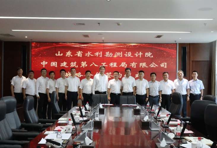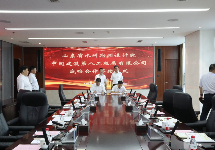 8月21日,山東省水利勘測(cè)設(shè)計(jì)院有限公司(簡(jiǎn)稱山東水設(shè))與中國(guó)建筑第八工程局有限公司(簡(jiǎn)稱中建八局)在濟(jì)南簽署戰(zhàn)略合作協(xié)議。山東水設(shè)黨委副書(shū)記、總經(jīng)理李貴清,中建八局山東分局副局長(zhǎng)張敬存出席簽約儀式并講話,山東水設(shè)黨委委員、副總經(jīng)理劉帥,中建八局二公司副總經(jīng)理陳錦明代表雙方簽署協(xié)議。