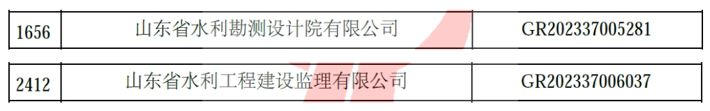 2023年12月28日,全國(guó)高新技術(shù)企業(yè)認(rèn)定管理工作領(lǐng)導(dǎo)小組辦公室公告了山東省2023年認(rèn)定報(bào)備的第二批高新技術(shù)企業(yè)名單,山東省水利勘測(cè)設(shè)計(jì)院有限公司(以下簡(jiǎn)稱(chēng)公司總部)和權(quán)屬企業(yè)山東省水利工程建設(shè)監(jiān)理有限公司(以下簡(jiǎn)稱(chēng)監(jiān)理公司)位列其中。公司總部是第三次通過(guò)國(guó)家高新技術(shù)企業(yè)認(rèn)定,監(jiān)理公司則是首次通過(guò)認(rèn)定,這標(biāo)志著公司總部和權(quán)屬一級(jí)企業(yè)全部通過(guò)國(guó)家高新技術(shù)企業(yè)認(rèn)定。作為山東水設(shè)權(quán)屬企業(yè)的山東大禹水務(wù)建設(shè)集團(tuán)有限公司、山東省水利工程試驗(yàn)中心有限公司均于2022年首次通過(guò)國(guó)家高新技術(shù)企業(yè)認(rèn)定。