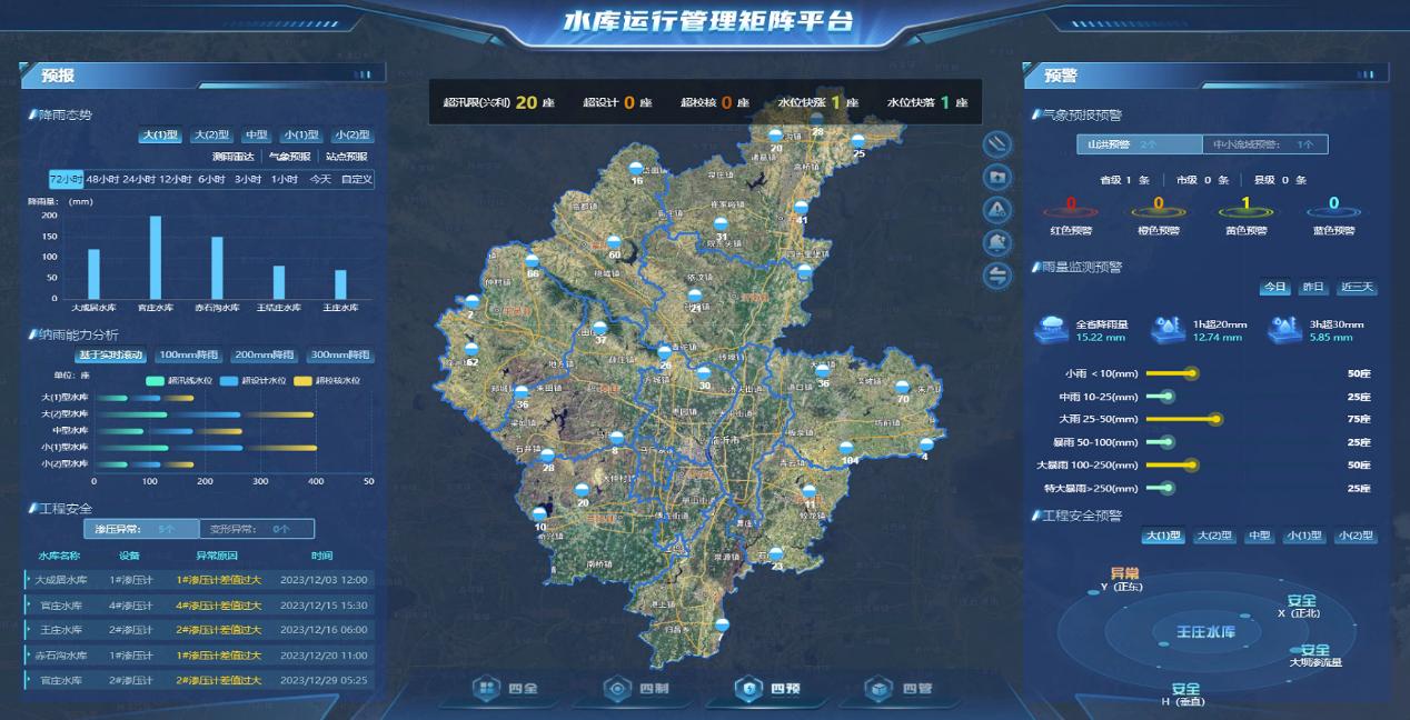 2023年水利部印發(fā)《水利部關(guān)于加快構(gòu)建現(xiàn)代化水庫運行管理矩陣的指導(dǎo)意見》。公司及時組建專業(yè)團隊,組織對文件的學(xué)習(xí),派員向該領(lǐng)域?qū)<艺埥?,實地調(diào)研水庫地方管理單位管理需求,以“水庫數(shù)字化管理系統(tǒng)”為基礎(chǔ),研發(fā)了“水庫運行管理矩陣平臺”。平臺以水庫實際業(yè)務(wù)需求為導(dǎo)向,利用數(shù)字孿生、智能識別、大數(shù)據(jù)等技術(shù),集合水庫數(shù)據(jù)資源和水利專業(yè)模型,建立互聯(lián)互通共享機制,全面實現(xiàn)了水庫“四全”“四制(治)”“四預(yù)”“四管”的管理矩陣功能。