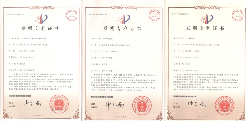 6.2022年10月,“新型大跨度拱形閘門技術(shù)研究與應(yīng)用”獲得齊魯水利科技進步一等獎,并獲得3項發(fā)明專利。